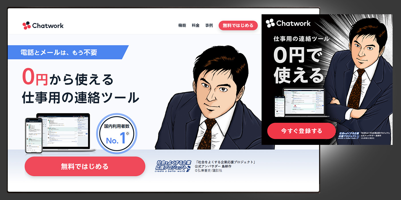 ※島耕作を起用したLP(左)とバナー(右)